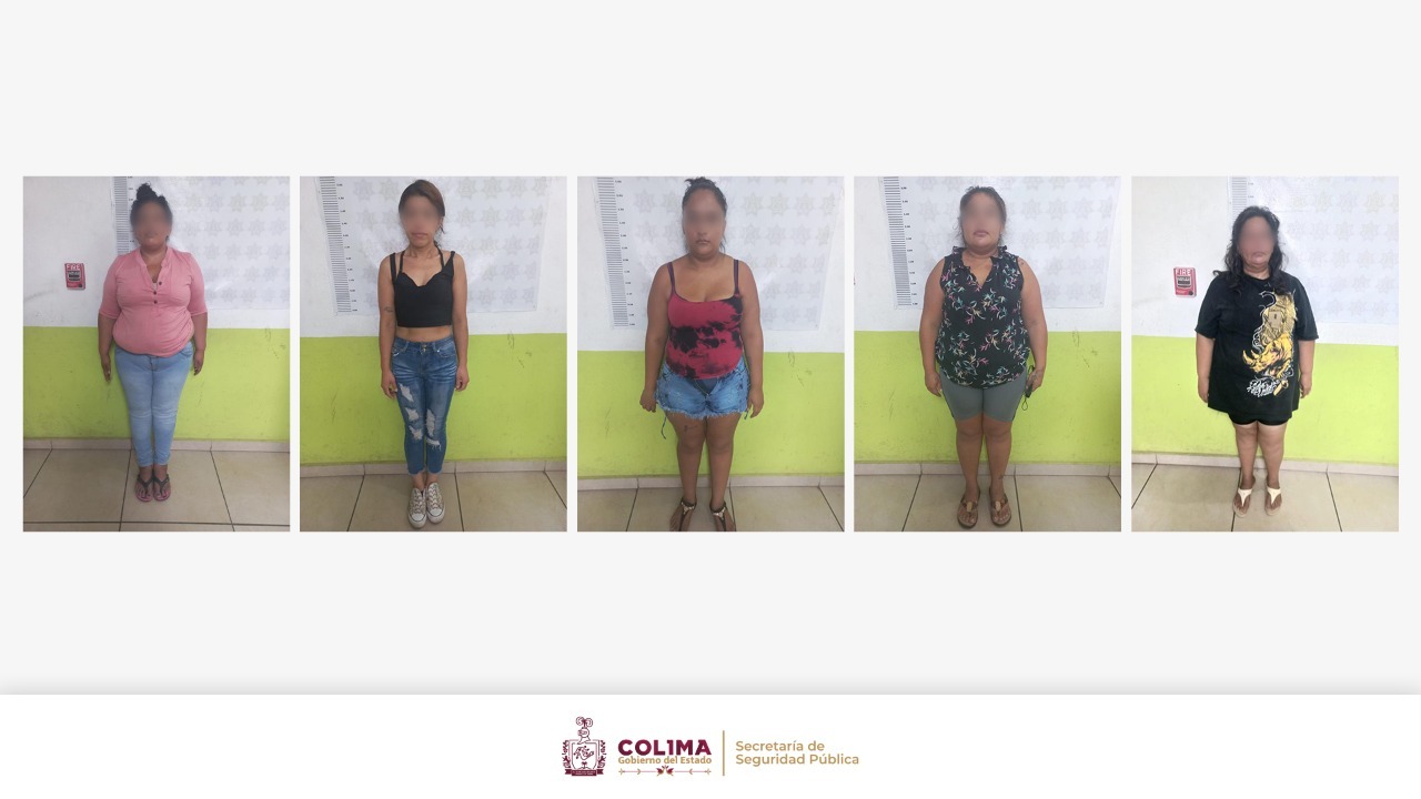 La Secretaría de Seguridad Pública (SSP) del Gobierno del Estado de Colima informa que la tarde de este lunes 5 de septiembre del presente año, personal de la Policía Estatal Preventiva (PEP) logró la detención de cinco mujeres a la que se imputan delitos contra la salud y de violación a la Ley Federal de Armas de Fuego y Explosivos, y a las que se les incautó más de 400 mil pesos en efectivo.